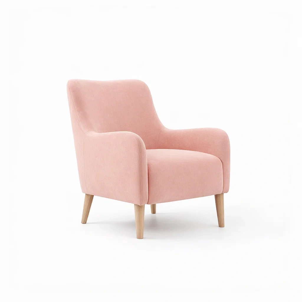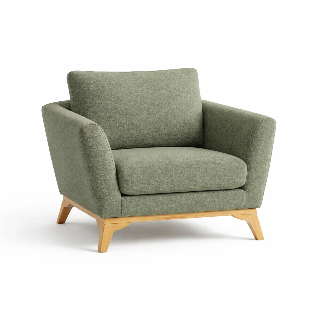 Fauteuil en tissu polyester vert kaki avec pieds en chêne