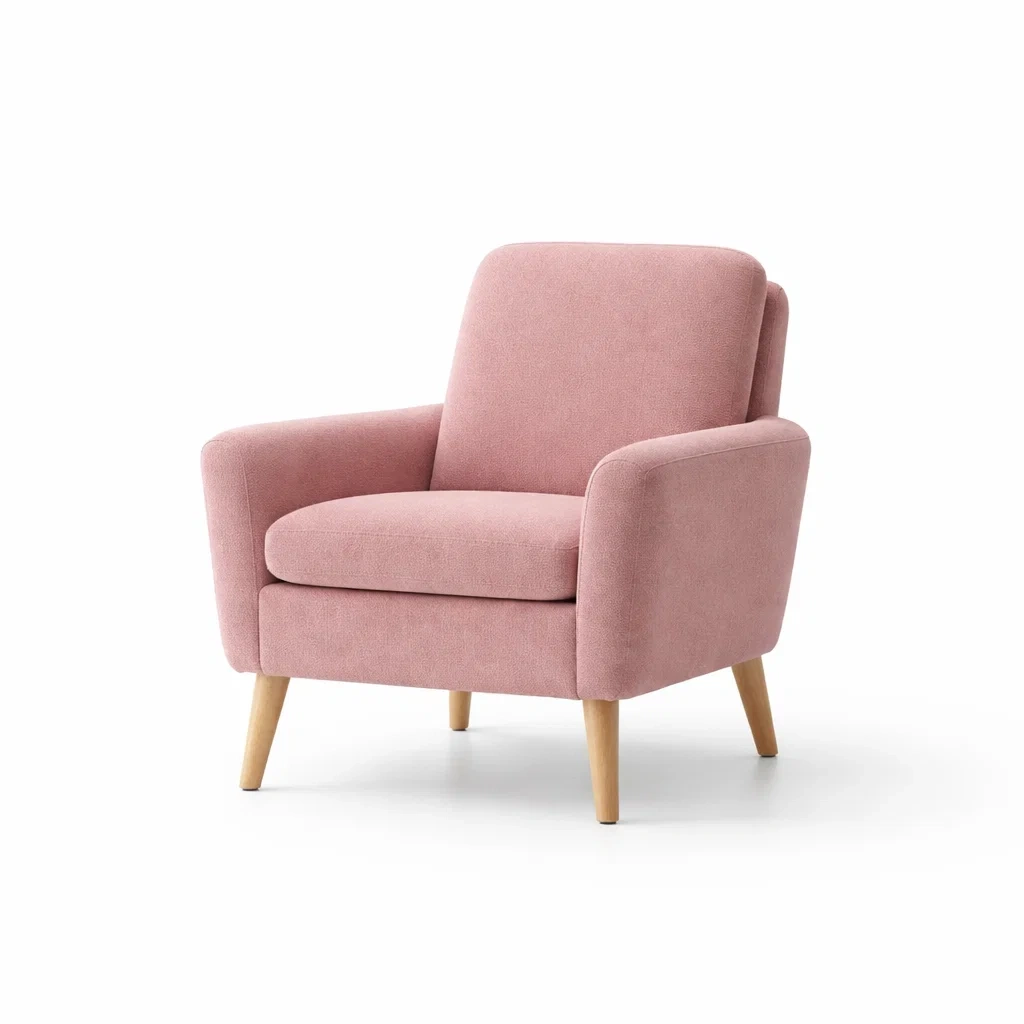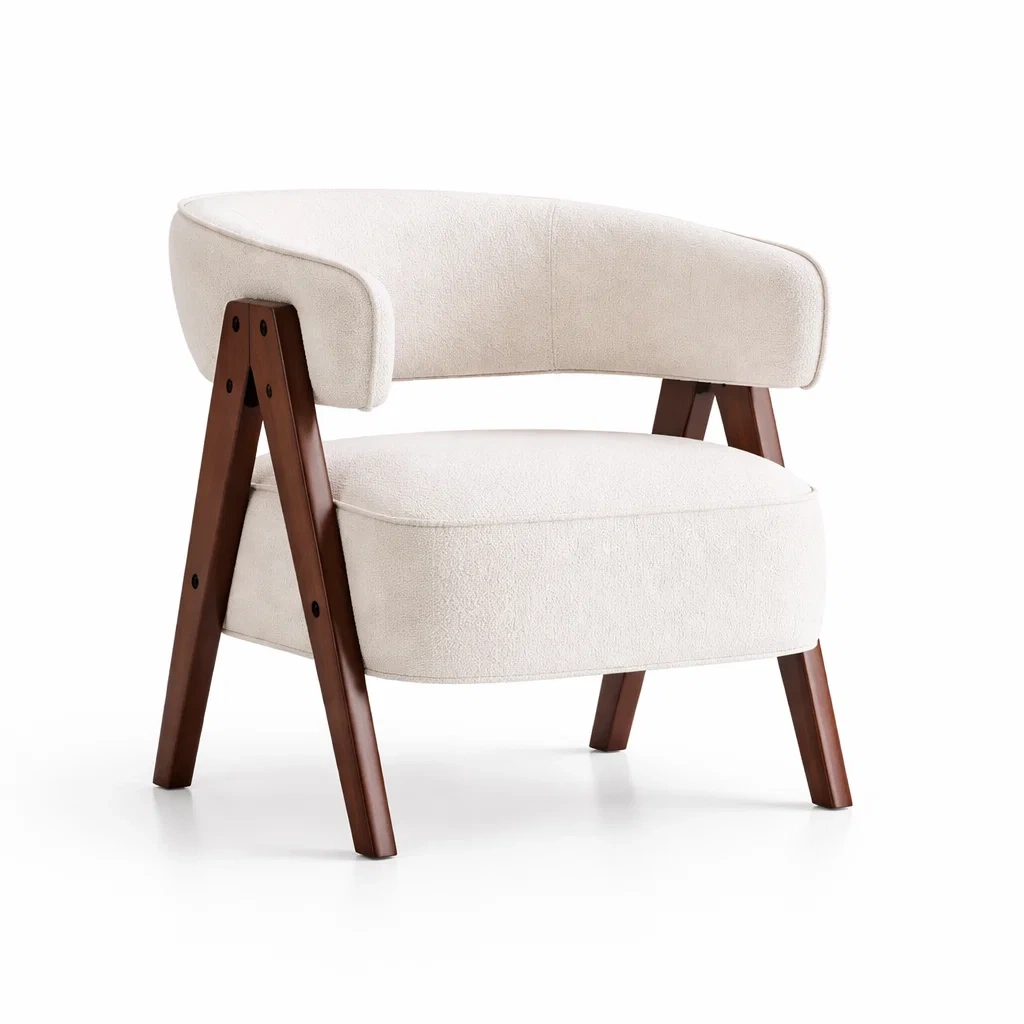 Fauteuil en tissu bouclé beige avec pieds en bois
