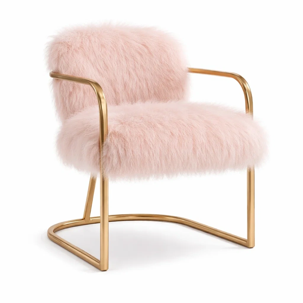 Fauteuil en métal avec revêtement en fausse fourrure rose