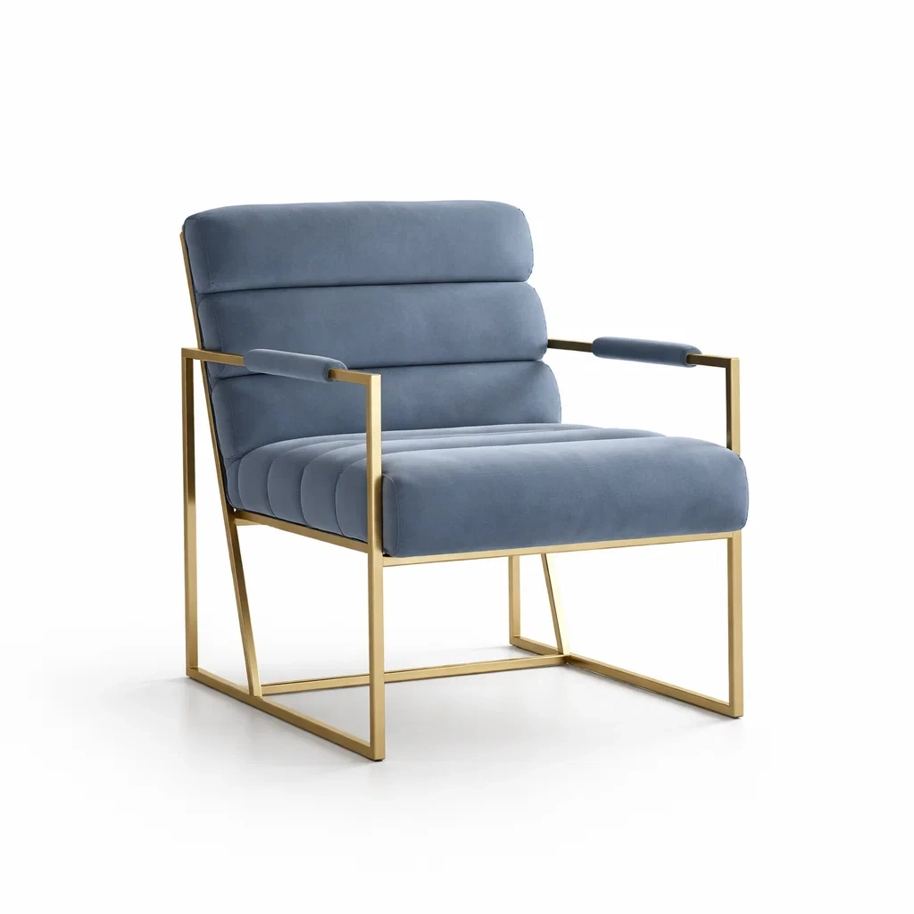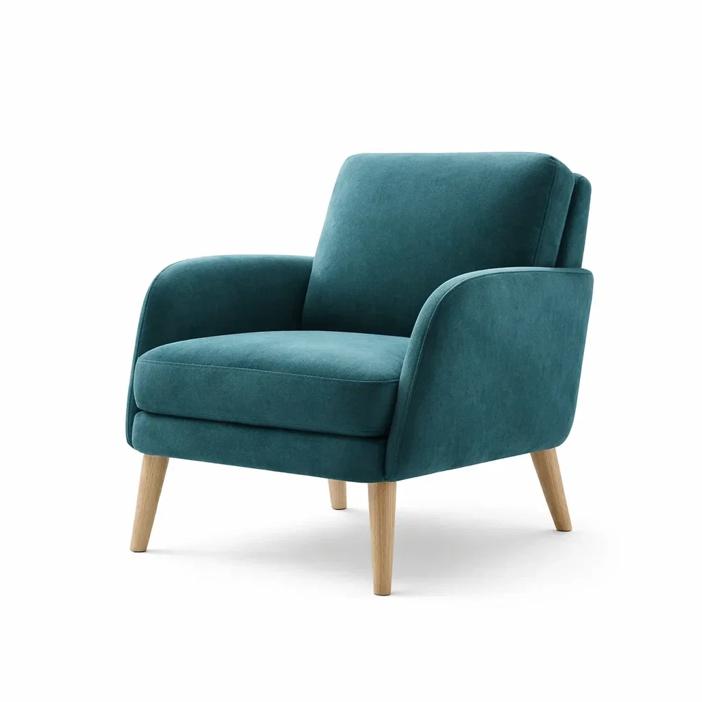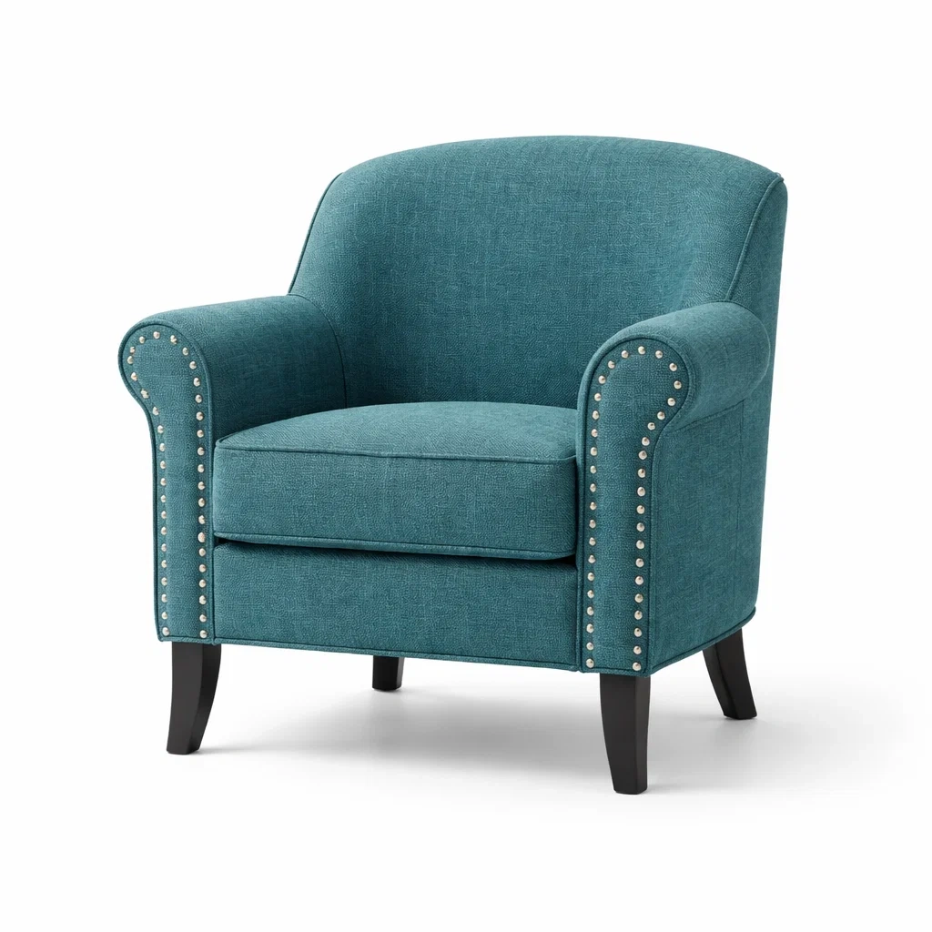 Fauteuil en tissu polyester turquoise avec clous en métal