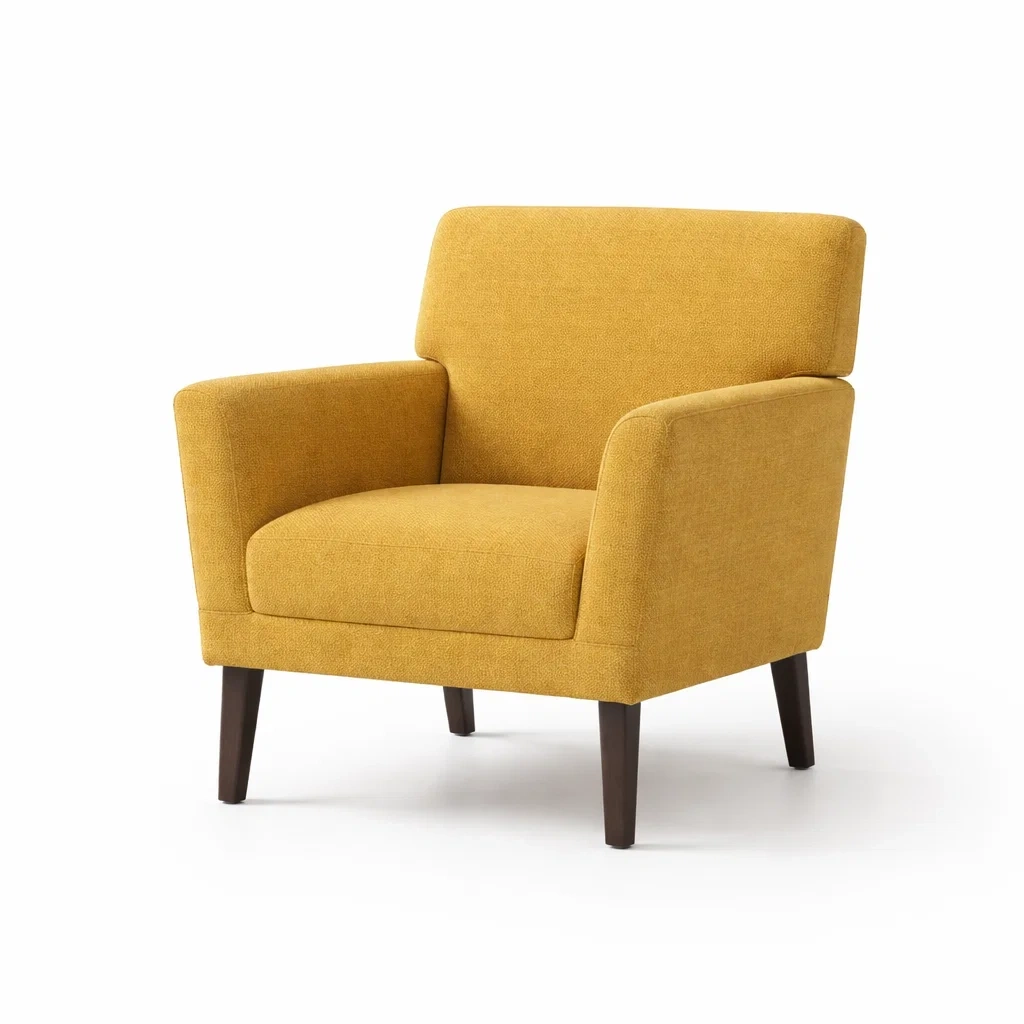 Fauteuil en tissu polyester jaune avec pieds en bois massif