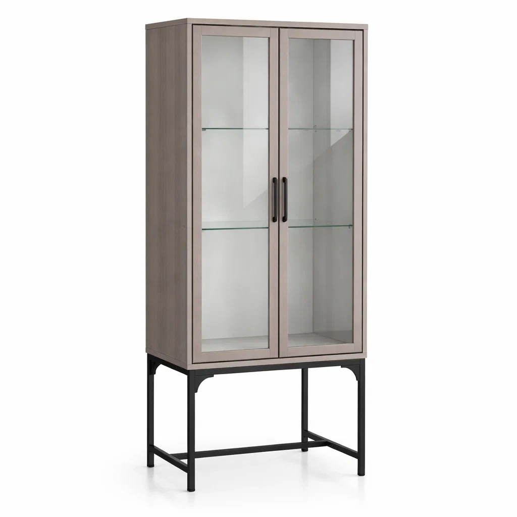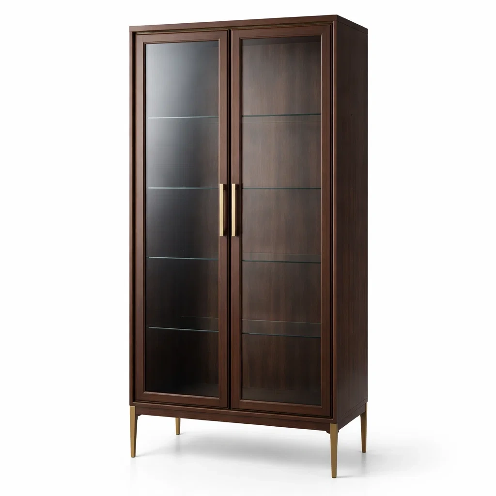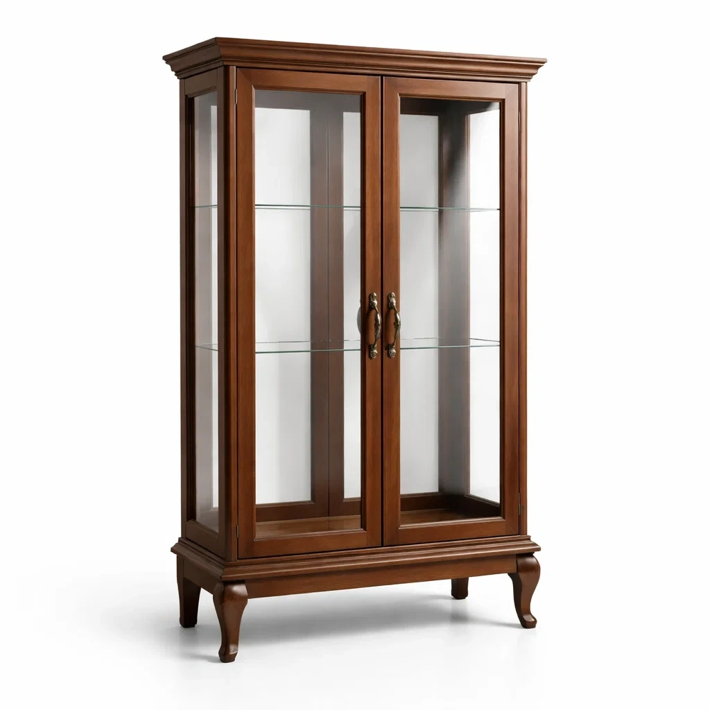 Vitrine en bois avec étagères en verre trempé et portes vitrées