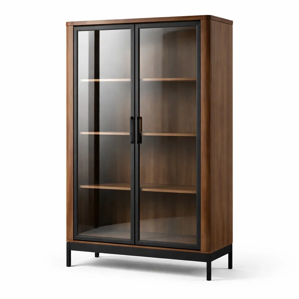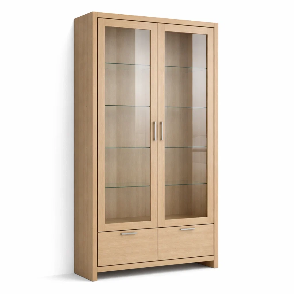 Vitrine en bois avec portes en verre trempé et tiroirs