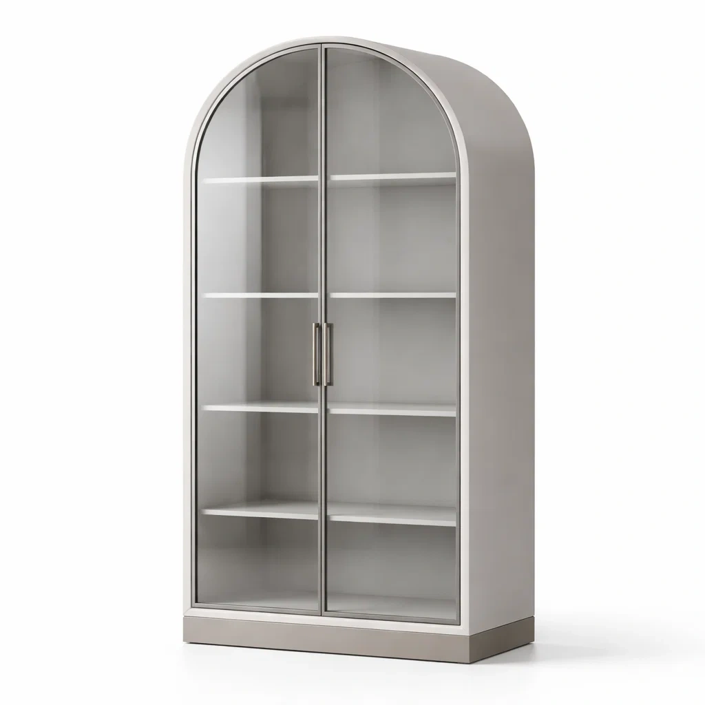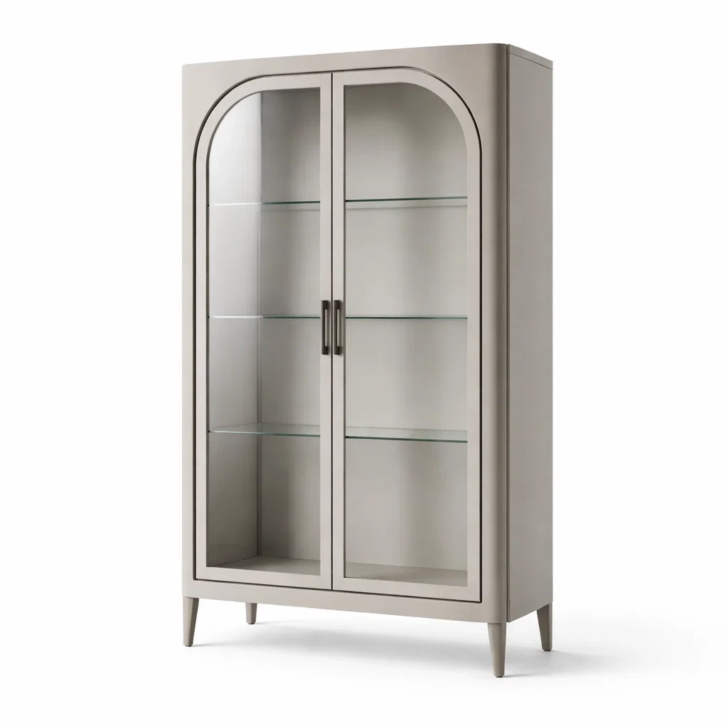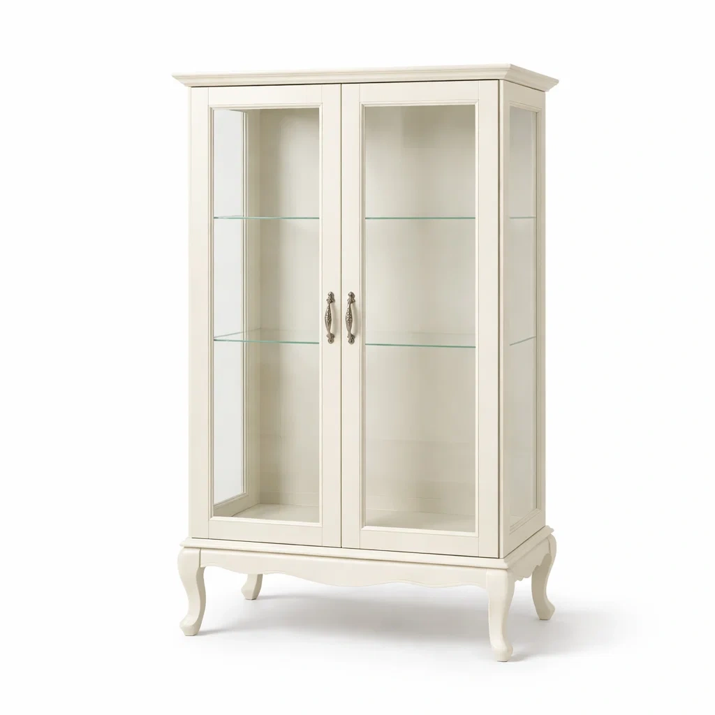 Vitrine en bois avec portes en verre trempé blanc et crème