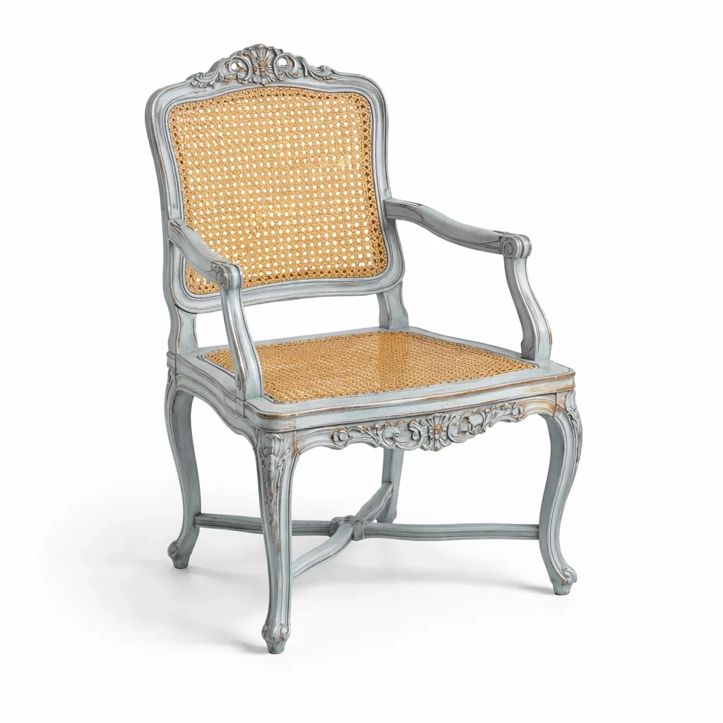 Fauteuil en bois avec assise et dossier en rotin tressé