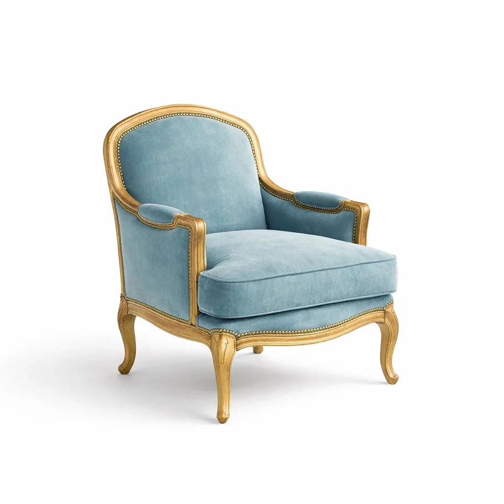 Matériaux : Revêtement en velours de coton, structure en bois massif doré