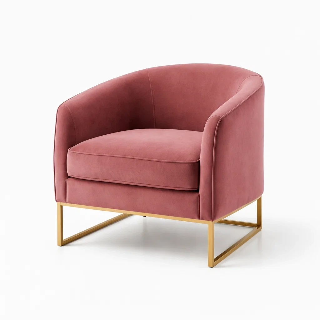 Ce fauteuil est composé de velours en polyester pour une assise agréable. La structure est en acier inoxydable doré garantissant robustesse et durabilité. Dimensions : 80 cm de longueur, 75 cm de largeur, 78 cm de hauteur. Poids : 10.5 kg. Nettoyage recommandé avec un chiffon humide.