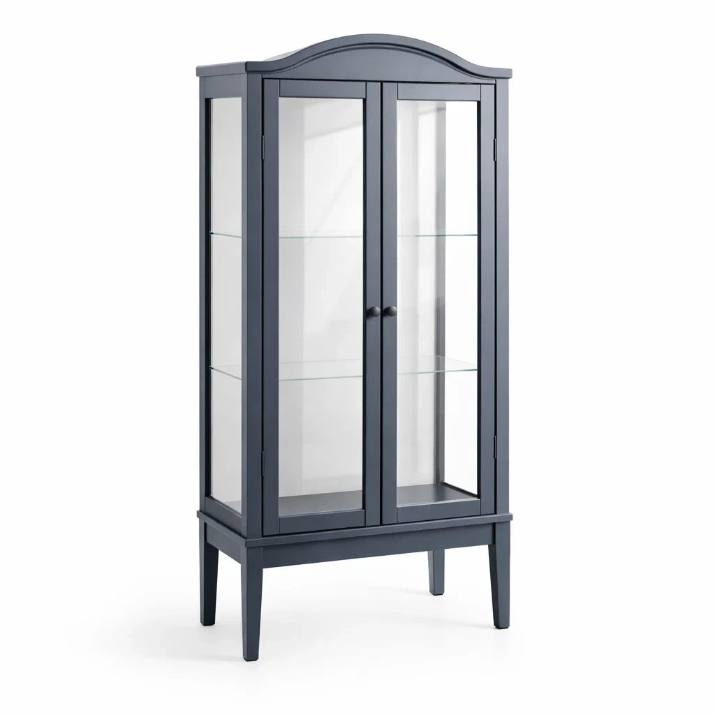 La vitrine dispose d'une structure en bois verni et de panneaux de portes en verre trempé de 4 mm d'épaisseur. Ses dimensions sont de 80 cm de longueur, 40 cm de largeur et 180 cm de hauteur, avec un poids total de 48 kg.