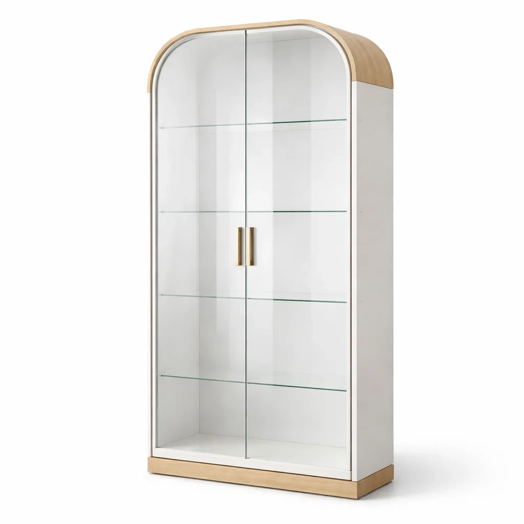 - Caractéristiques : Forme arrondie avec double porte en verre.